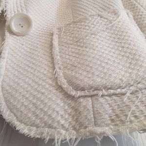 White textured blazer with frayed edges, size 6, pre-loved, still in great shape