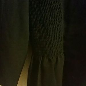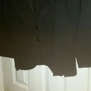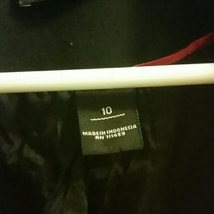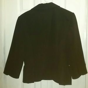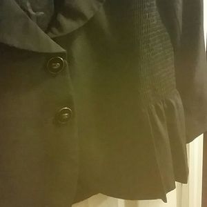 White House Black Market Black Blazer size 10. It has smocking on the sides, which is super flattering and stretchy and a slight peplum. Portrait collar. So sad this doesn't fit. So pretty irl . Photos can't really show how great this is! EUC. I did notice some slight piling as I was photographing, but nothing major and does not take away from the beauty of this great and super versitile jacket. Professional enough for the office, but stylish enough to be styled with jeans for everyday wear.