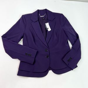 White House Black Market Blazer Womens 12 Deep Amethyst Notch Lapel Ruffle Back