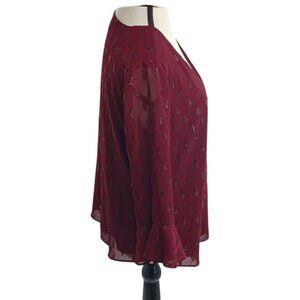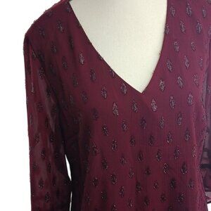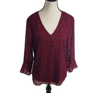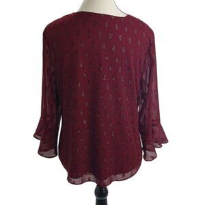 White House Black Market Blouse Red V Neck Geometric Metallic Bell Sleeve 6