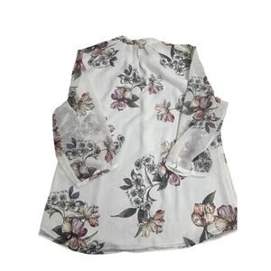 White House Black Market Blouse Women’s 12 Sheer Floral Print 3/4 Sleeve Top