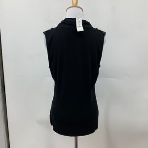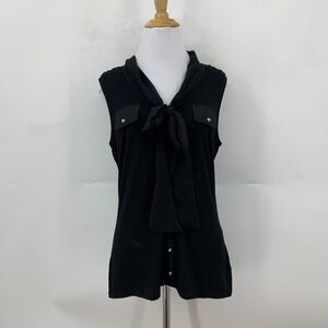 White House Black Market Blouse Womens M Medium Black Pussycat Bow Button Front