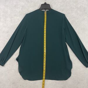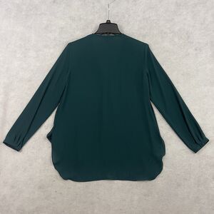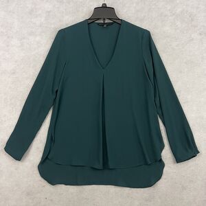White House Black Market Blouse Womens Size 2 Green Pleated V Neck High Low Hem
