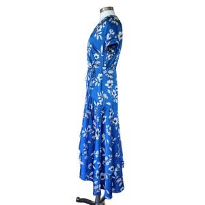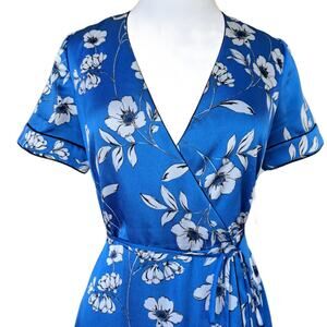White House Black Market Blue Floral Satin Faux Wrap Midi Maxi Dress Size 4