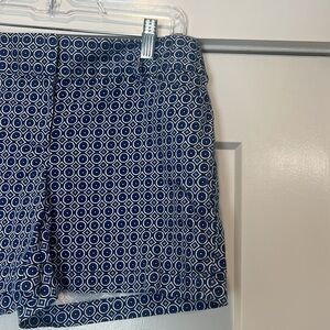 These shorts from White House Black Market feature a sophisticated blue hue with a crisp, structured design. The tailored fit and geometric pattern make them perfect for both casual and dressy occasions. Size 6 and in perfect condition!