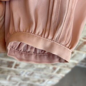 White House Black Market Blush Mini Pleats Studded V-neck Blouse