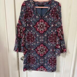 White House Black Market Boho Print Bell Sleeve Dress Size XS