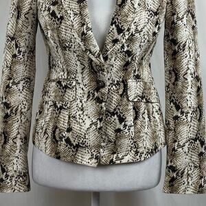 White House Black Market Brown Cream Snakeskin Print Fitted Jacket NWOT Size 00