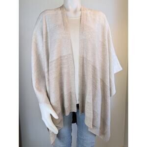White House Black Market Cape Shawl Wrap OS Beige Cream Stripe Layering Neutral