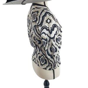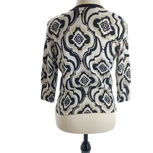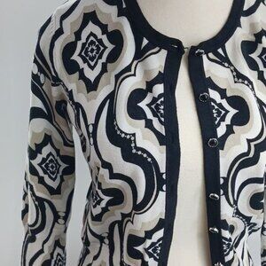 White House Black Market Cardigan Sweater Button Down Geometric Knit Womens
