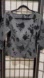 White House Black Market Charcoal Knit Top WITH FLOCKED FLORAL WOMENS SIZE 10