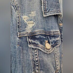 White House Black Market Classic Distressed Medium Blue Denim Jacket Size 10