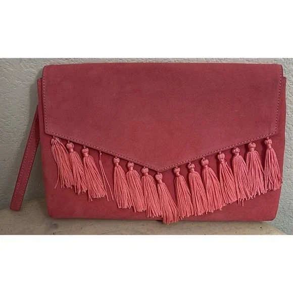 White House Black Market Clutch Suede Coral Tassel Evening Bag