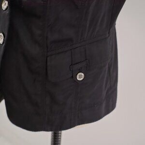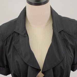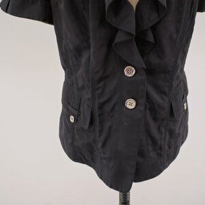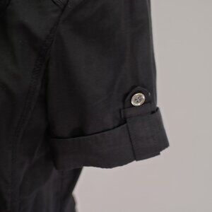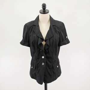 White House Black Market Collared Ruffle Button Front Black Rolled Tab Top 10 Pockets Rayon Polyester