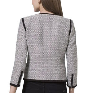 WHBM White House Black Market Contrast Tweed Zip Front Blazer Jacket Suit Jacket Classic Dressy Formal Career Office Professional Dress Jacket Zip Front Fall Winter Style