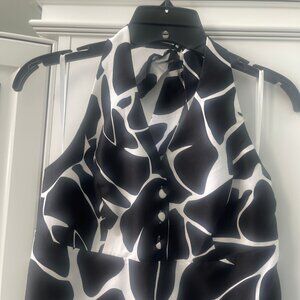 Super flattering White House Black Market Halter Dress. Love it so much, I rebought in my current size as this doesn't fit me anymore. This is a size 4, but I feel could also fit a size 6 as the A-Line bottom flares out. This dress is super versatile in my opinion. I wore it to a wedding, as well as out on date night to fancy steak house.