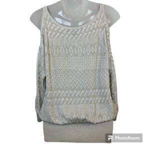 White House Black Market Cream Cold-Shoulder Sweater Top Size Medium