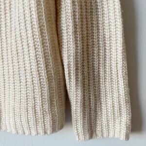 Soft cable-knit sweater with wool content. Long sleeves and ribbing at cuffs, and hem. Thick gorgeous