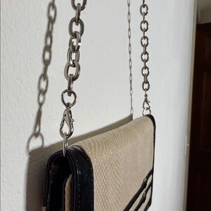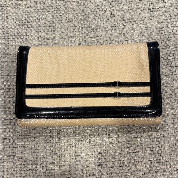 White House Black Market Cream Faux Snake with Black Patent Clutch/Crossbody