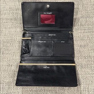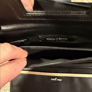 This stylish clutch features a sophisticated black trim with a chic cream body. Perfect for any occasion.