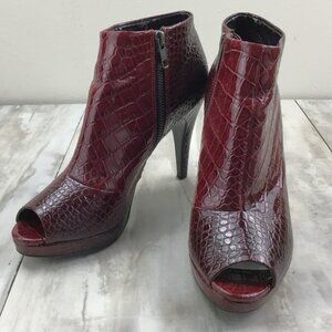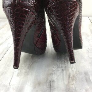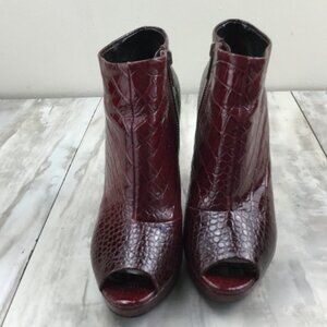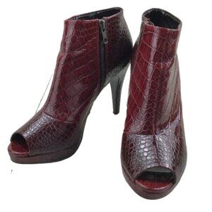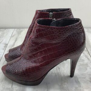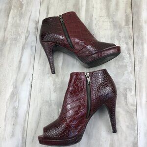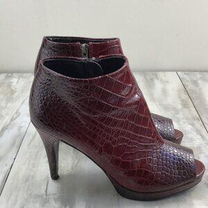 White House Black Market Crocodile Paulette Wine Peep Toe Booties 7