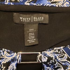 White House Black Market Damask Black Blue Dress w Silver Accents Size XXS