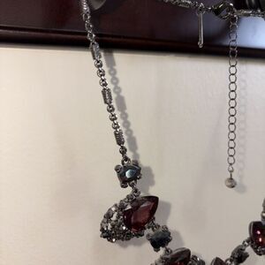 White House Black Market Dark Pink & Black SilverTone Statement Bold Necklace