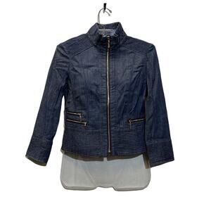 White House Black Market Denim Jacket Womens Size 00 Blue Zip Front Motostyle