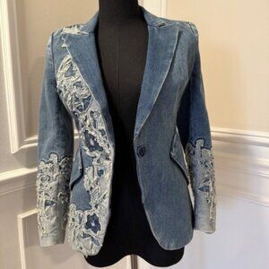 White House Black Market Denim & Lace 00P Editor Blazer