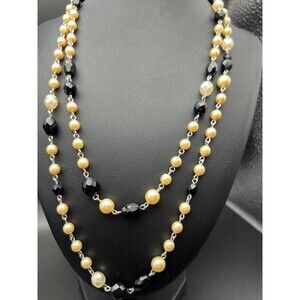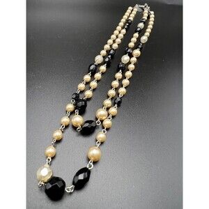 White House Black Market two-strand necklace with a mix of creamy pearls and black faceted beads.