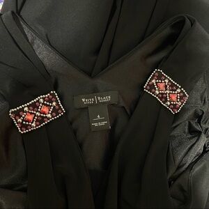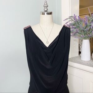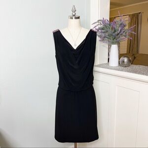 White House Black Market Draped V Neck Dress with Pink Crystal Accents 4 Small