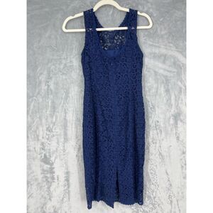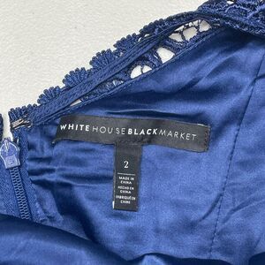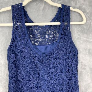 White House Black Market Dress 2 Navy Blue Lace Sheath Sleevless Satin Lined
