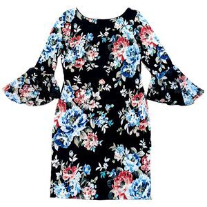 White House Black Market Dress Floral Bell Sleeve Sheath