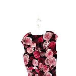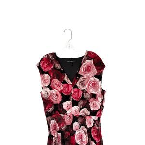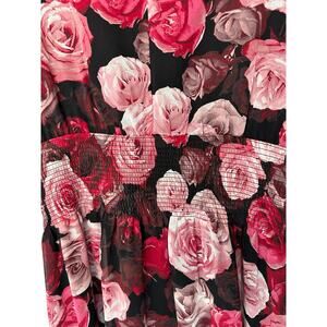 White House Black Market Dress Red Pink Floral Print Dark Romantic Chiffon Large