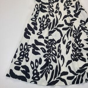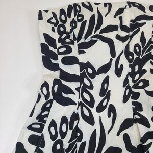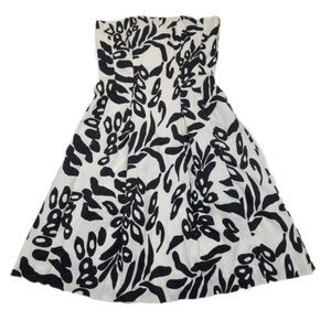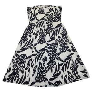 White House Black Market Dress Strapless A-Line Black White Leaf Pattern, Sz 0
