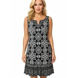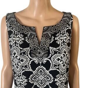 White House Black Market Dress Womens Large Black White Sleeveless Shift A-Line
