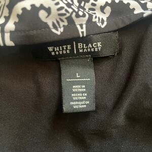 Step out in style with this sophisticated White House Black Market dress! Perfect for any occasion, this dress combines classic elegance with modern comfort. Features: - Brand: White House Black Market - Size: Women's Large - Color: Black and White - Style: Shift, Sheath, A-Line - Sleeve Length: Sleeveless - Condition: Pre-owned, in good condition - Material: Lightweight with plenty of stretch Measurements: - Pit to Pit: 20 inches - Length (Shoulder to Hemline Front): 39 inches This dress is ready to ship either the same or the next business day, so you can enjoy it without delay. Don't miss out on this versatile and chic addition to your wardrobe!