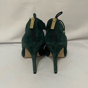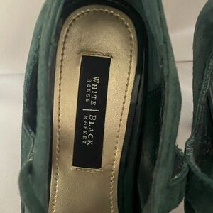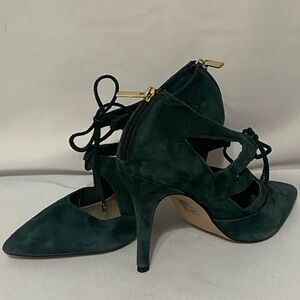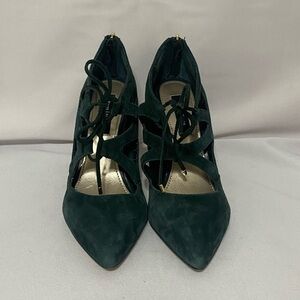 White House Black Market EUC green suede lace up pointed toe stiletto heels 8