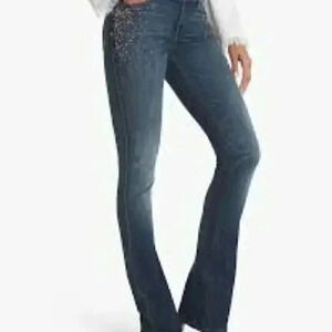 White House Black Market Embellished Bootcut Jeans.The classic bootcut silhouette is embellished with intricate bead details along the side pockets. While great for casual Fridays.