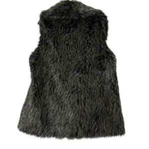 White House Black Market Faux Fur Long Vest Gray Black Sleeveless Jacket Med