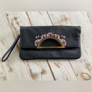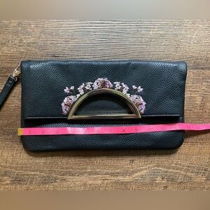 White House Black Market Faux Leather Floral Embroidered Clutch Handbag wristlet