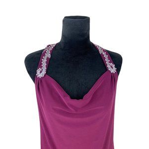 White House Black Market Faux Pearl Beaded Wide Strap Sleeveless Blouse Maroon
