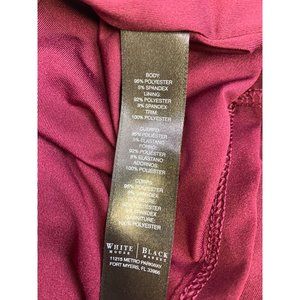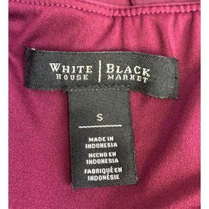 Make a statement with the White House Black Market Faux Pearl Beaded Wide Strap Sleeveless Blouse in a stylish maroon hue. This blouse is a perfect combination of sophistication and modern elegance, ideal for adding a touch of glamour to your wardrobe.
