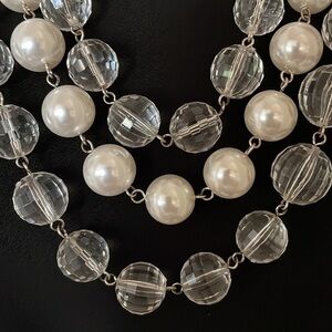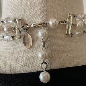 White House Black Market Faux Pearl & Crystal Bauble Silver 3 Strand Necklace