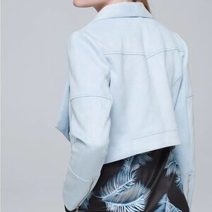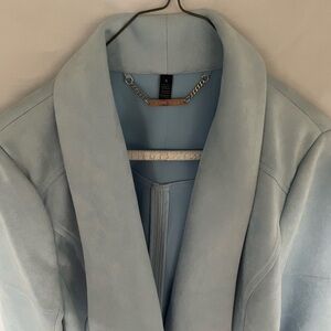 White House Black Market Faux-Suede Drape Front Jacket, Baby Blue, Smal
