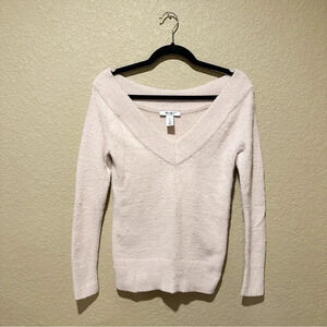 White House Black Market Feather Soft Fuzzy V-Neck Pullover Sweater Size XXS