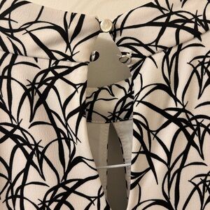 This elegant black and white tank top from White House Black Market features a fitted and ruched design, offering a sophisticated and modern look. The sleeveless style is perfect for warm weather, while the monochromatic color scheme adds a touch of timeless elegance. Ideal for both casual and formal occasions, this top is a versatile addition to any wardrobe.polyester material is machine washable. In excellent condition