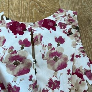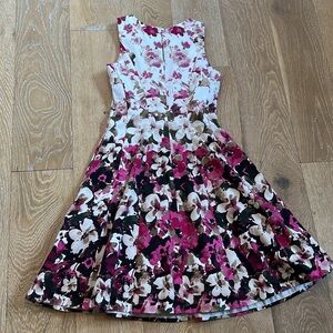 Very nice white WHBM pink floral print flare dress. Nicely lined with a back zipper closure. Excellent preloved condition!