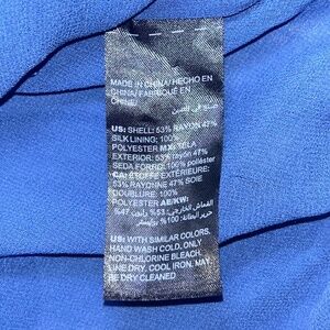 This White House Black Market blouse brings elegance and texture to your wardrobe. Designed in a rich blue hue, it features a floral burnout pattern in a soft silk blend, complete with an off-the-shoulder neckline and billowy sleeves for a romantic, feminine look.