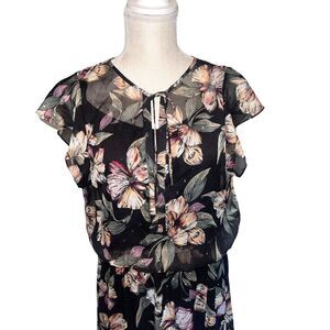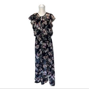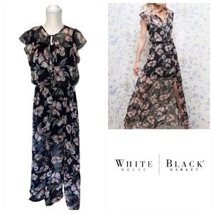 White House Black Market Floral Flutter Sleeve Maxi Dress Size Medium